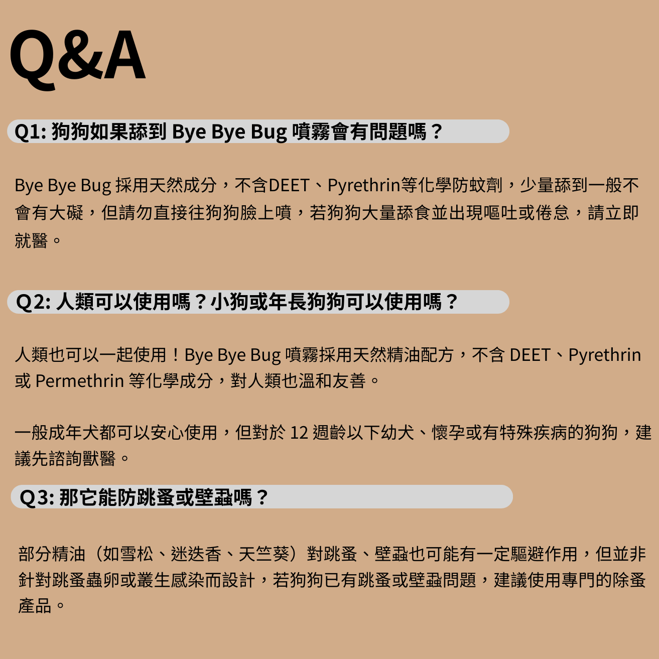 使用方式:噴灑於狗狗容易被叮咬的部位,如腳掌、尾巴、腹部、耳尖等